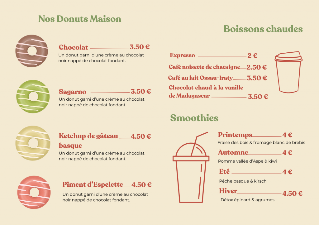 Chez Bakery Bliss Café, chaque gourmandise est pensée pour éveiller vos papilles et vous offrir un moment unique. Nos donuts faits maison se déclinent en saveurs classiques et originales, mêlant inspirations américaines et produits du Pays Basque.